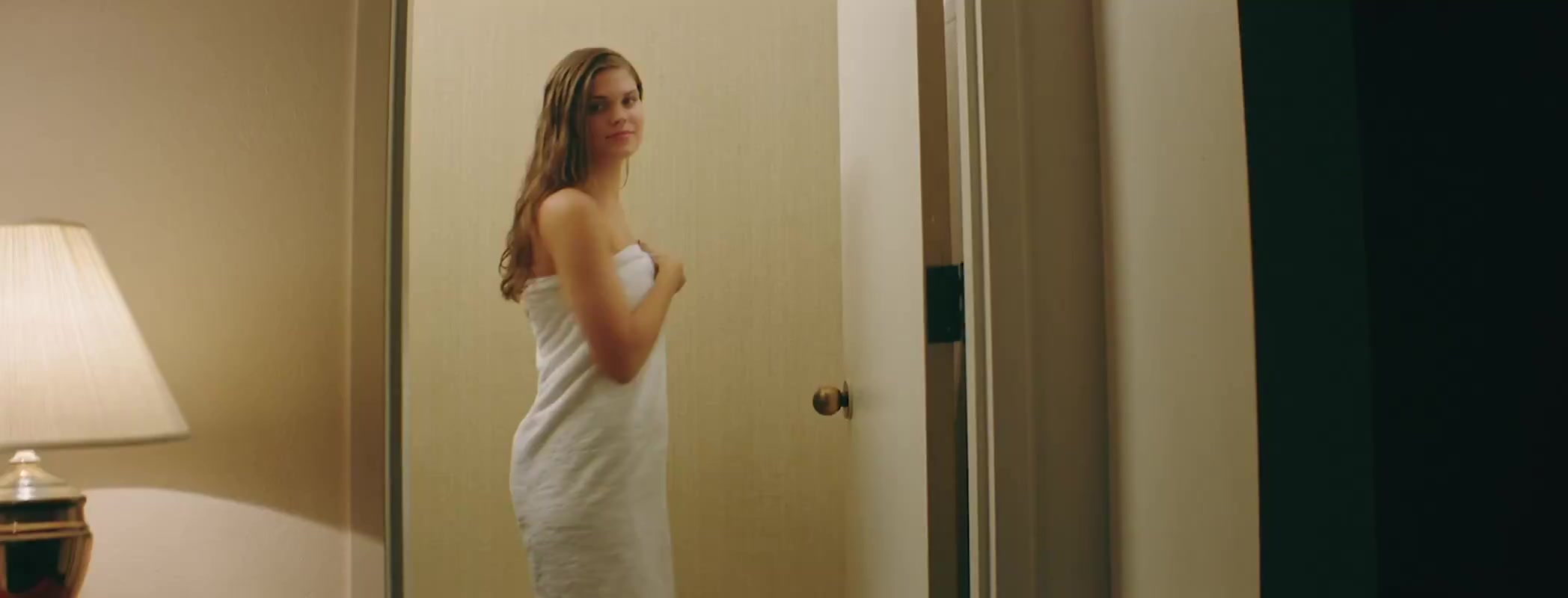 Brittany Clark has several nude scenes, including one where she seduces a man in a car by unbuttoning her blouse to reveal her breasts in a red bra. She also appears nude when she drops her towel at a doorway, and there's a scene where she admires her cleavage in a black dress in front of a mirror before being kissed by a male character. These scenes are described as comedic and part of the film's narrative which involves various encounters and interactions.