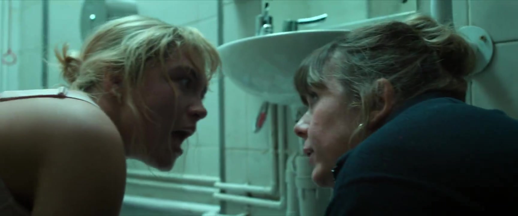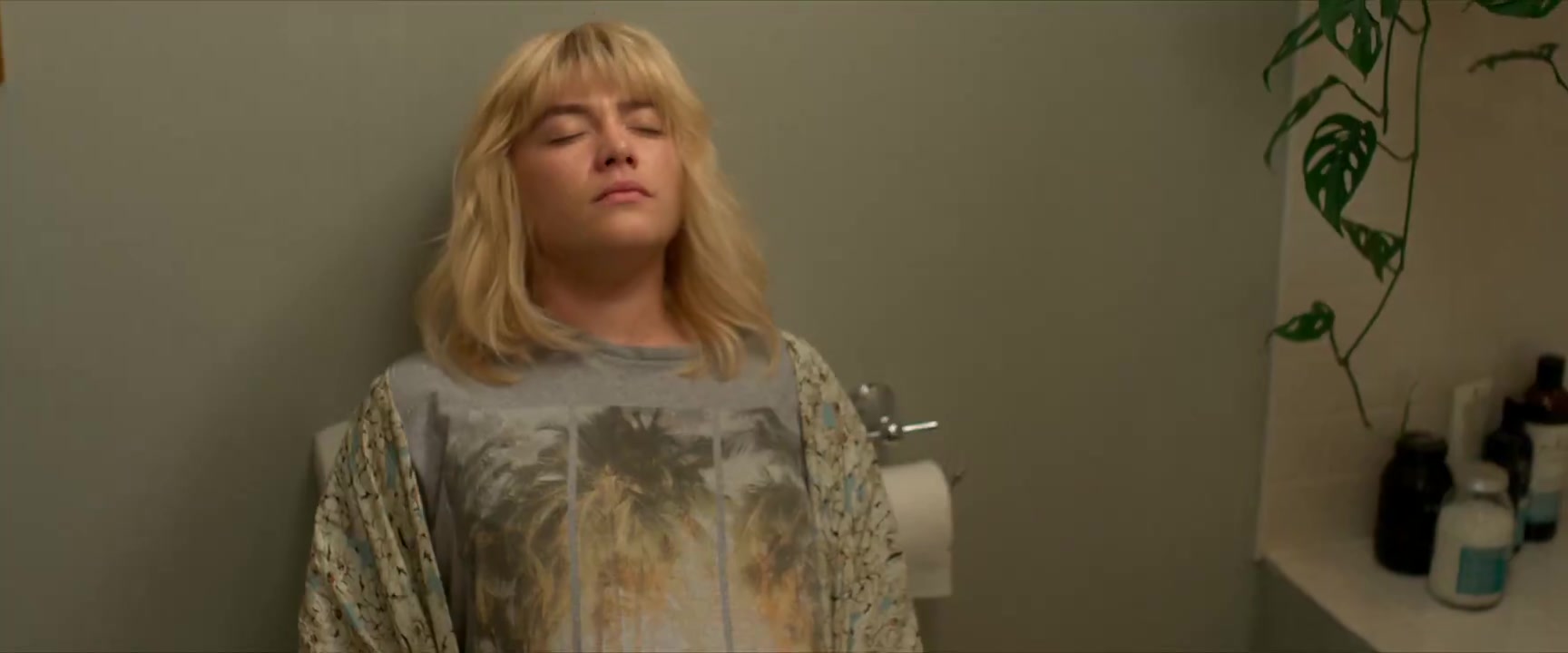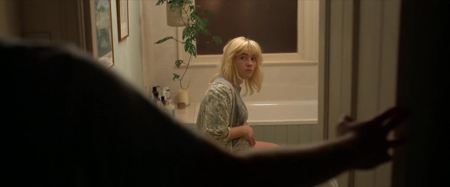 Nude Scenes: Florence Pugh appears topless in a scene where her character, Almut, gives birth in a gas station bathroom. This scene has been described as Florence stripping to her bra, with her panties lowered, showing her rump from the side in several shots as she prepares to deliver. Additionally, there's mention of a pregnant nude scene, where the nudity is shown with prosthetics.