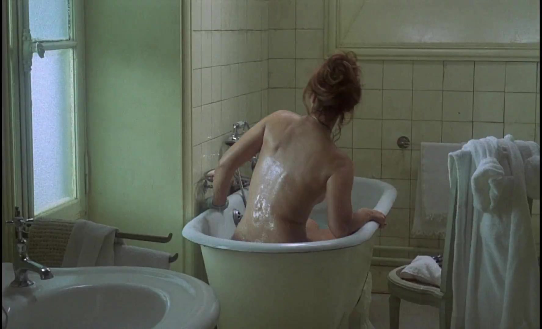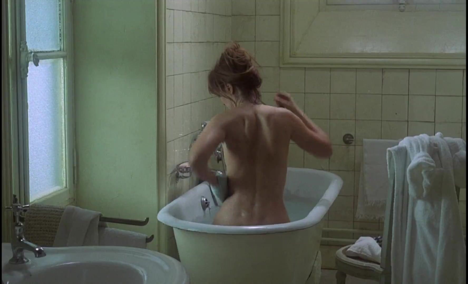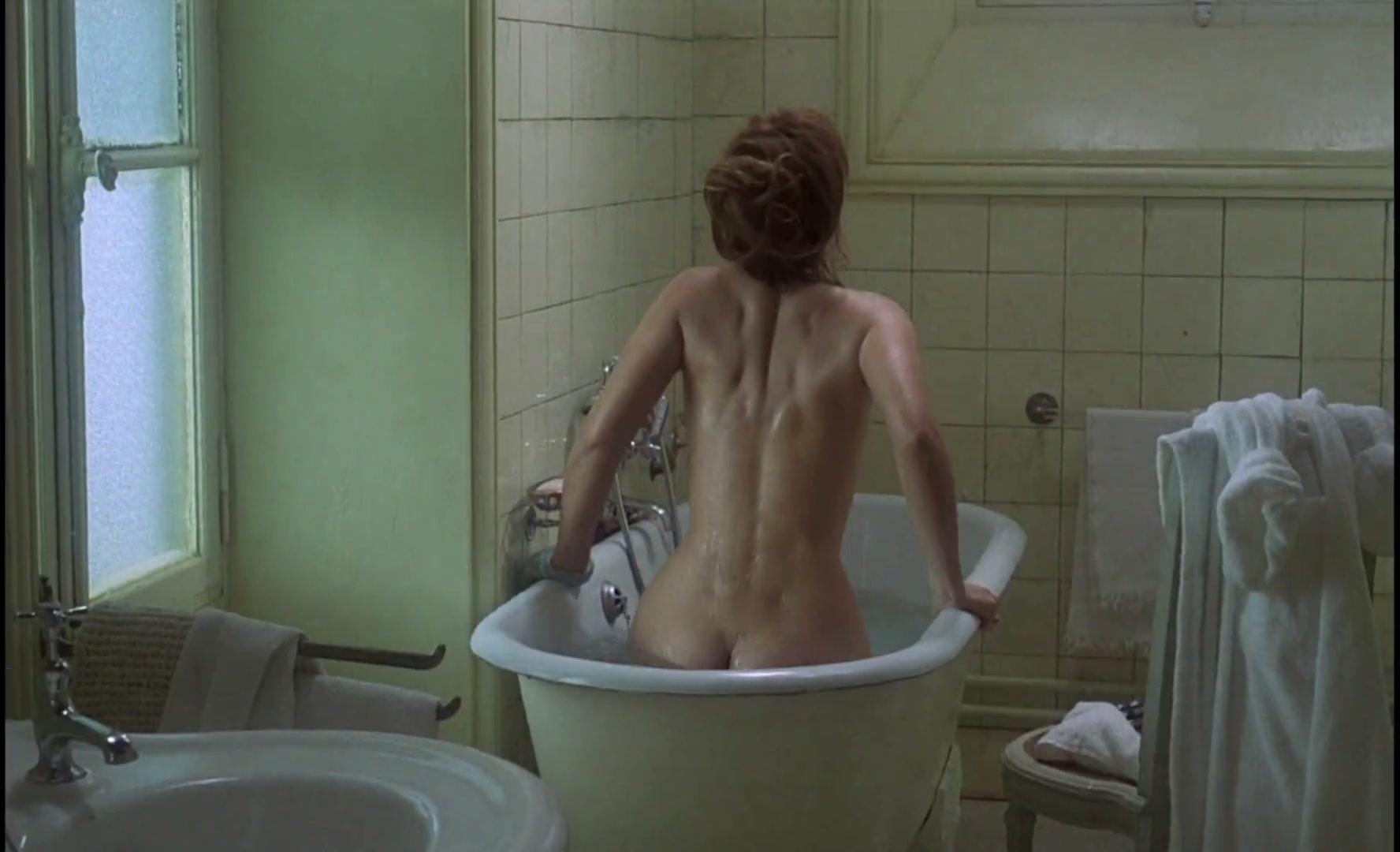 Lea Massari has a nude scene where she is shown in a bathtub, revealing her bare backside. There's also a side view where her breasts are partially visible. This scene is part of a larger, controversial moment in the film where her character, Clara, shares an intimate moment with her son, Laurent, which has been the subject of much discussion due to its depiction of an incestuous relationship.