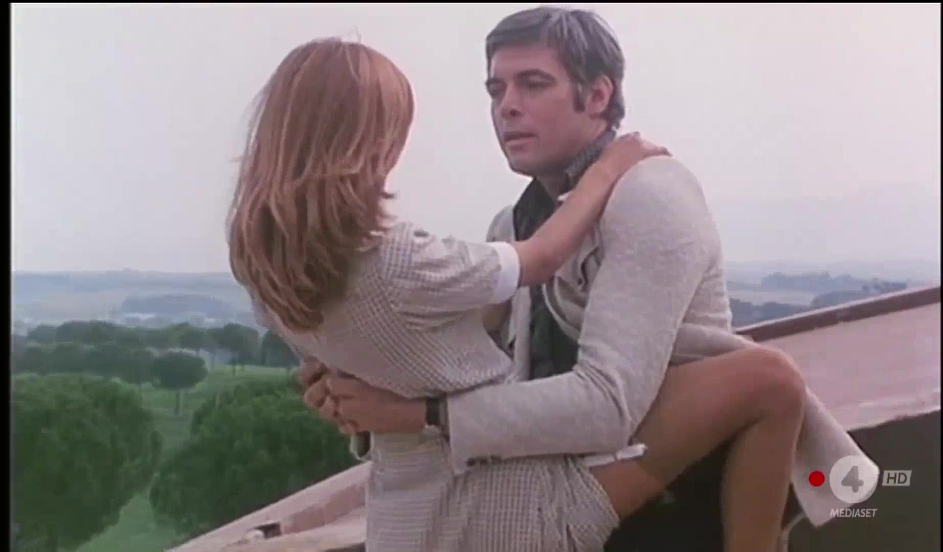 Stefania Casini appears nude in multiple scenes, including one where she undresses in front of a mirror, another on a rooftop with a man where she wears an open robe showing her breasts, and in an empty room with a man. Her character, Odile, is central to some of the film's more provocative moments.