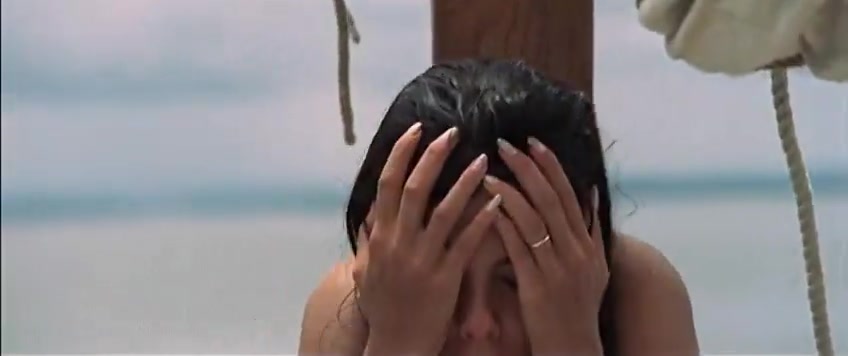 Beach Scene: She's also shown running around the beach naked, engaging in what appears to be a playful or romantic chase with one of the male characters, adding to the film's exotic and erotic setting.