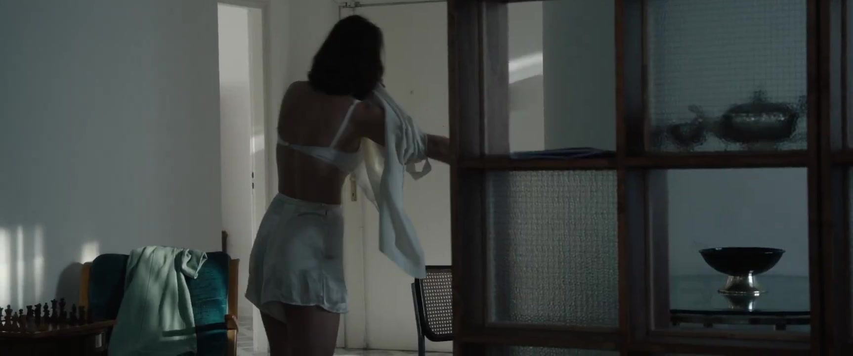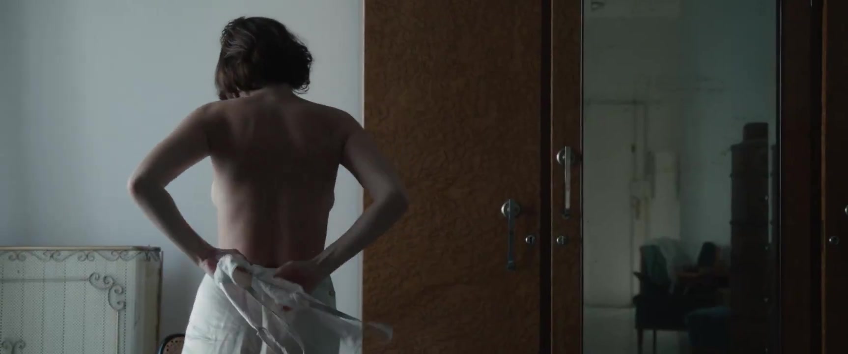 Irina Starshenbaum appears in nude scenes in the 2023 film "Shoshana." In one scene, she is shown getting out of bed, displaying side boob while topless in just a slip. She then stands by a chair and begins to put on her bra, offering a view from behind. Another scene features her topless while leaning over a guy in bed, showing plenty of side boob, though her nipple is digitally erased, and she is seen from behind again as she gets out of bed to put on her bra.