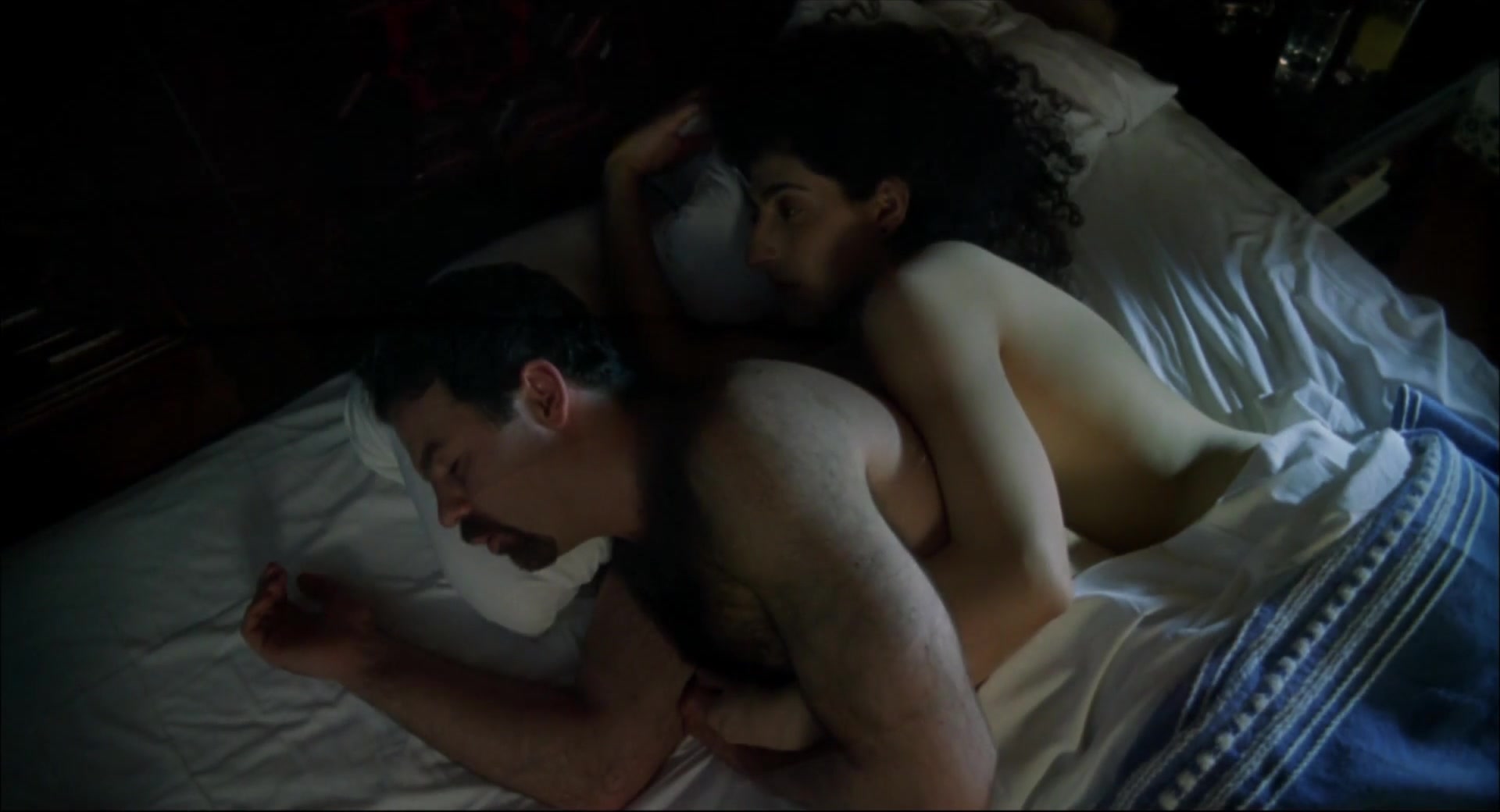 There's another scene where she is by a lake, removing her blouse to reveal her backside and a side view of her breast while entering the water. They skinny dip, showing brief glimpses of her breasts, and later sit naked on a blanket watching the sunset, with her backside visible.