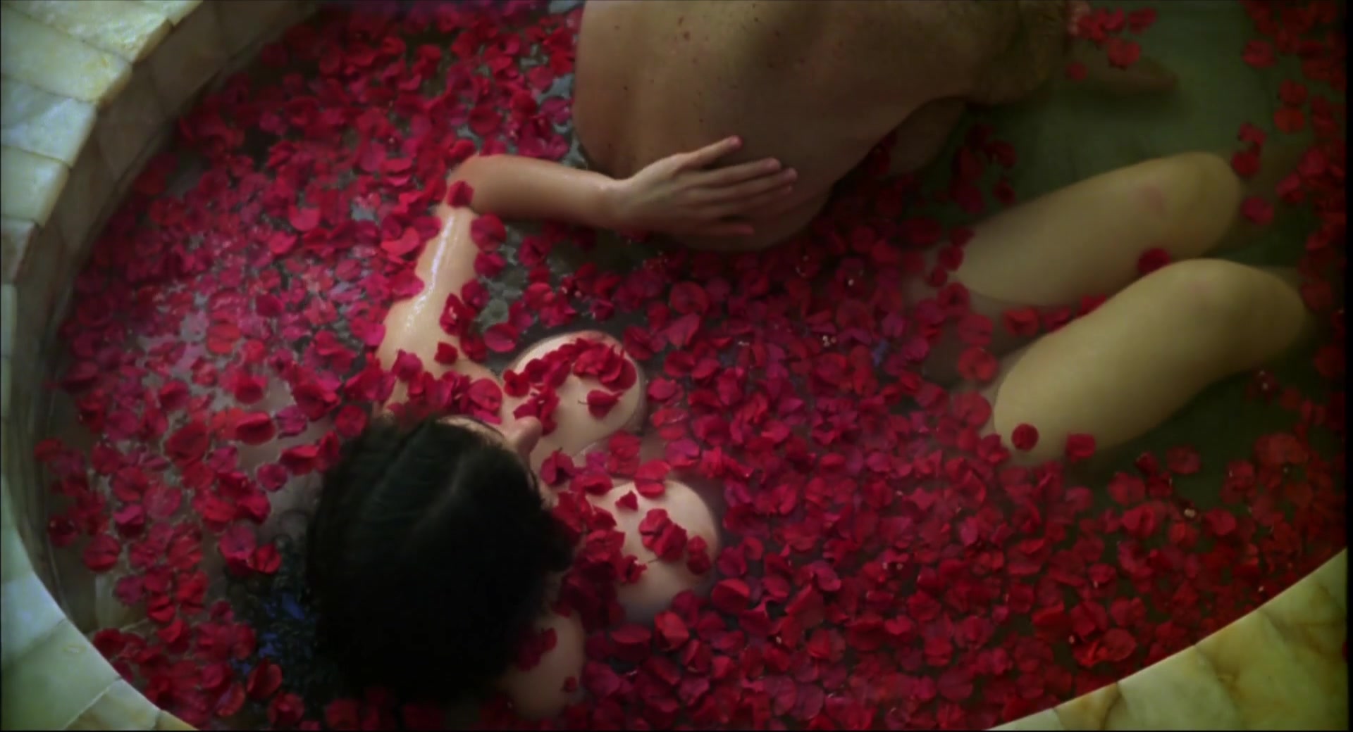 Additionally, there's a scene in a bathtub filled with rose petals where she is fully nude, with her breasts and pubic area visible from above before a male character joins her.
