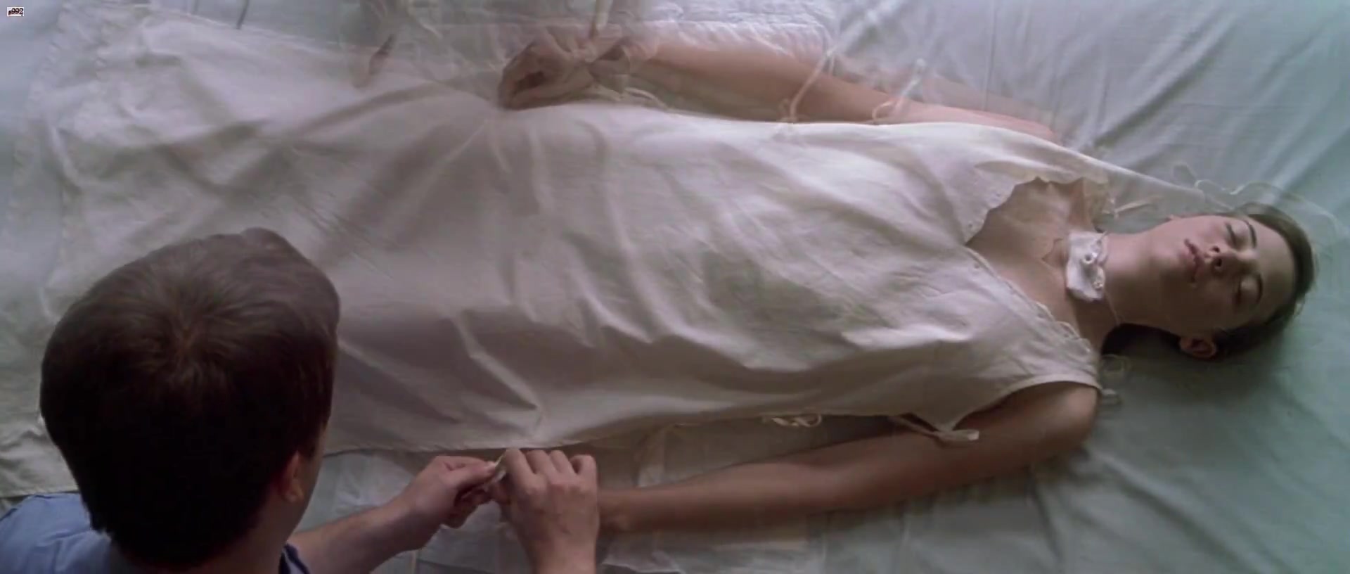 Topless in a sponge bath scene: Watling is depicted receiving a sponge bath while topless, with her breasts visible as she begins to wake up.