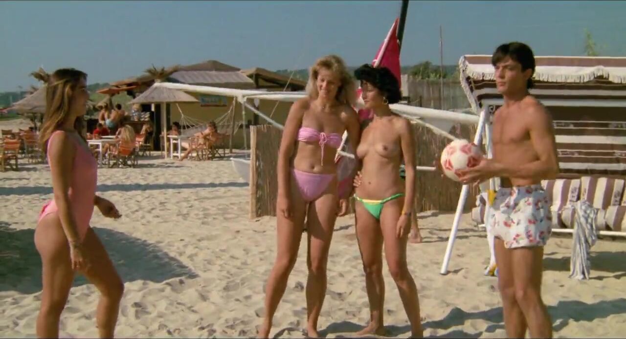 "On se calme et on boit frais à Saint-Tropez" (1987), directed by Max Pécas, features several nude scenes, primarily focusing on actress Leila Fréchet and other cast members. Leila Fréchet as Juliette Nadaud: She appears nude in multiple scenes, showcasing her breasts, buttocks, and bush. Notable scenes include her being naked in bed after a night of sex and appearing topless on a beach. There's also mention of her character engaging in sexual activities, which contributes to the film's explicit content. Other Actresses: Stéphane Sylvian: She lifts her shirt in one scene to have her breasts autographed by a famous DJ. Krystyna Ferentz and Véronique Catanzaro: Both are seen topless on a rich man's yacht and later tanning on the beach, looking at muscular men in tight swimsuits. The film is noted for its frequent nudity, aligning with the sex comedy genre popular in French cinema during that era. It includes various scenes where characters are seen in states of undress, contributing to the film's raunchy and comedic tone.