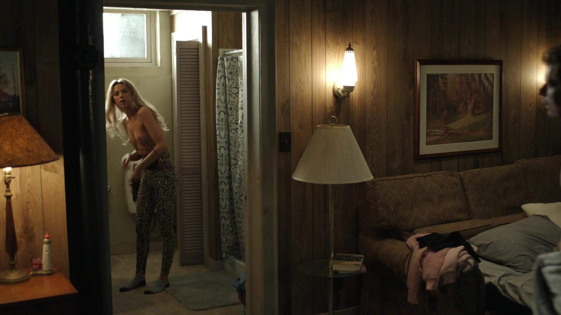 Riley Voelkel (Renee Segna): Voelkel appears topless in a brief scene, showing her breasts. She’s seen in a bathroom putting on a bra, then walking into a bedroom where a man helps clasp it, lasting about 30 seconds to 1 minute. The moment is described as casual yet sensual, fitting Renee’s evolving role as a power player.