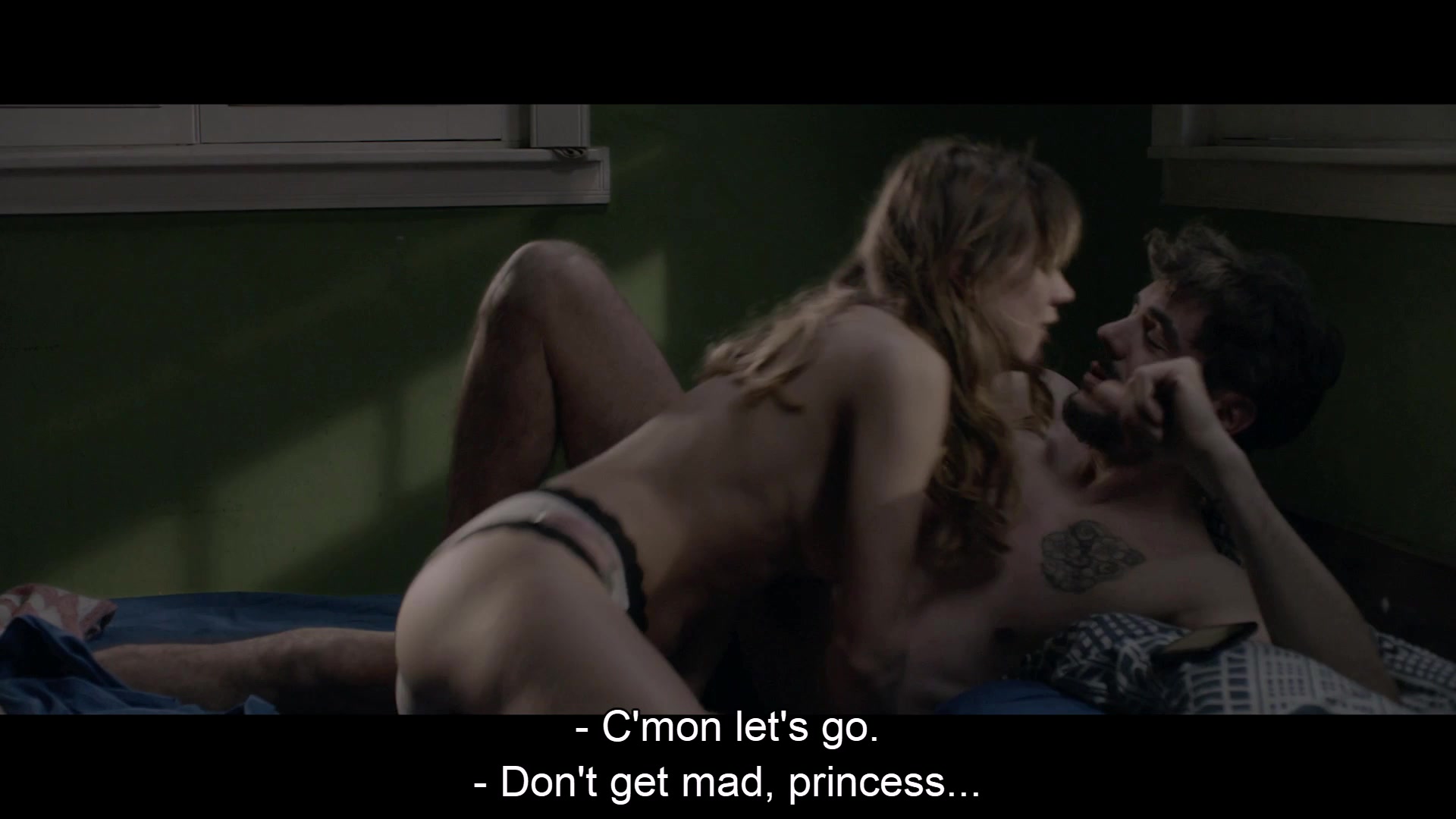 Sofia Brito shows bare breasts and butt having sex.