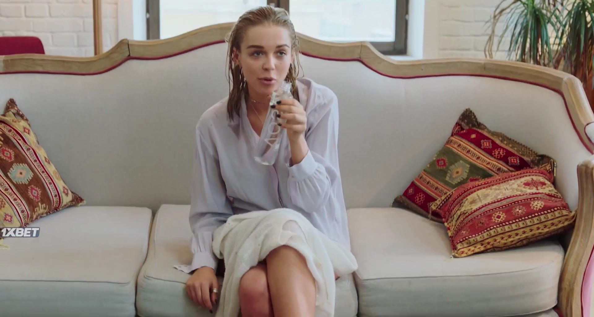 Sofya Sinitsyna has a scene where her character removes a robe, revealing her body, including breasts and buttocks, in a moment observed by another character.