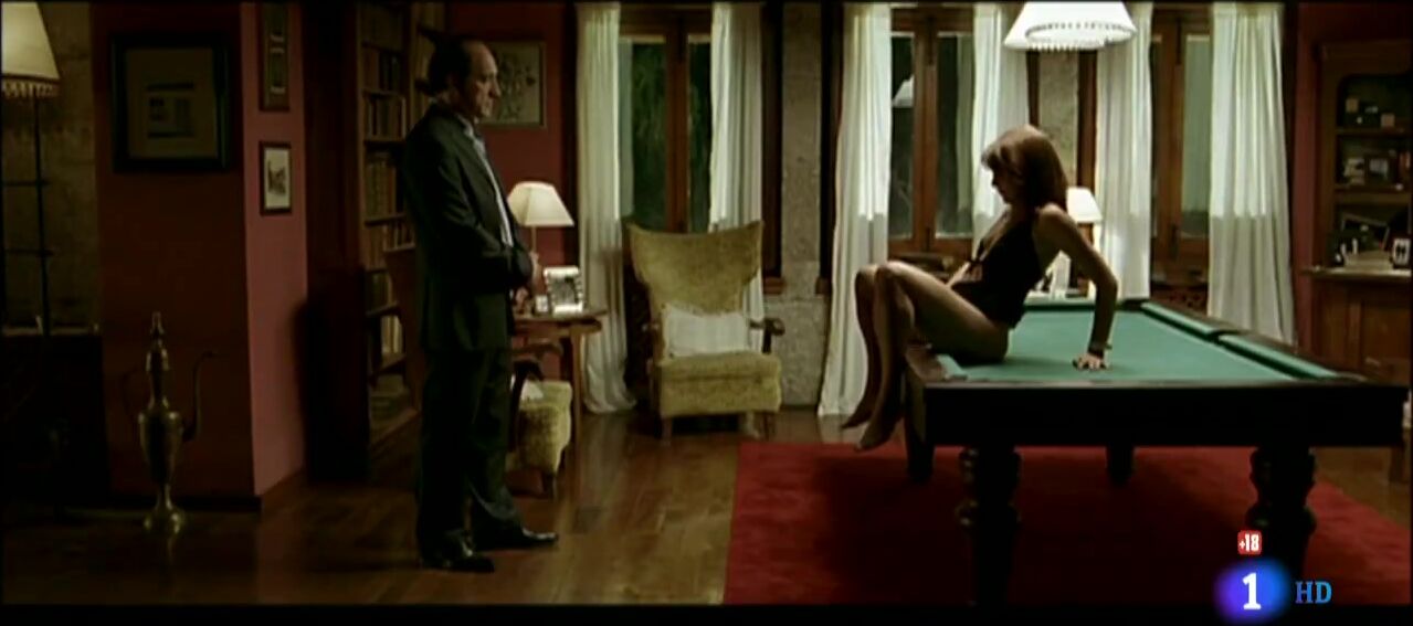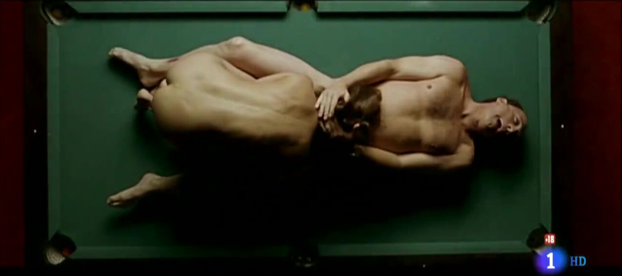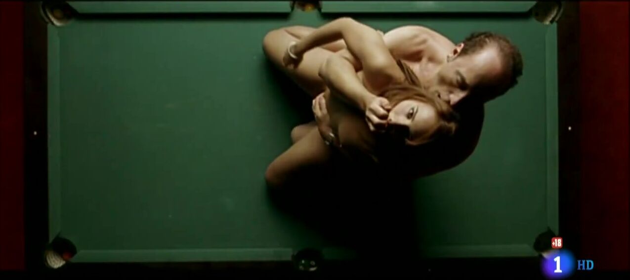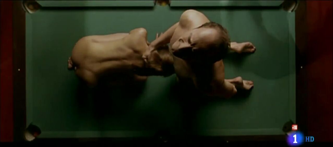Nude Scenes Description: Verónica Echegui is depicted in various scenes where she shows her breasts and butt, including full frontal nudity in sex scenes. One notable scene involves her sitting on a pool table, undressing, and engaging in sexual activities with a male character, which ends abruptly when the ceiling collapses. Another scene includes her topless while participating in intimate moments