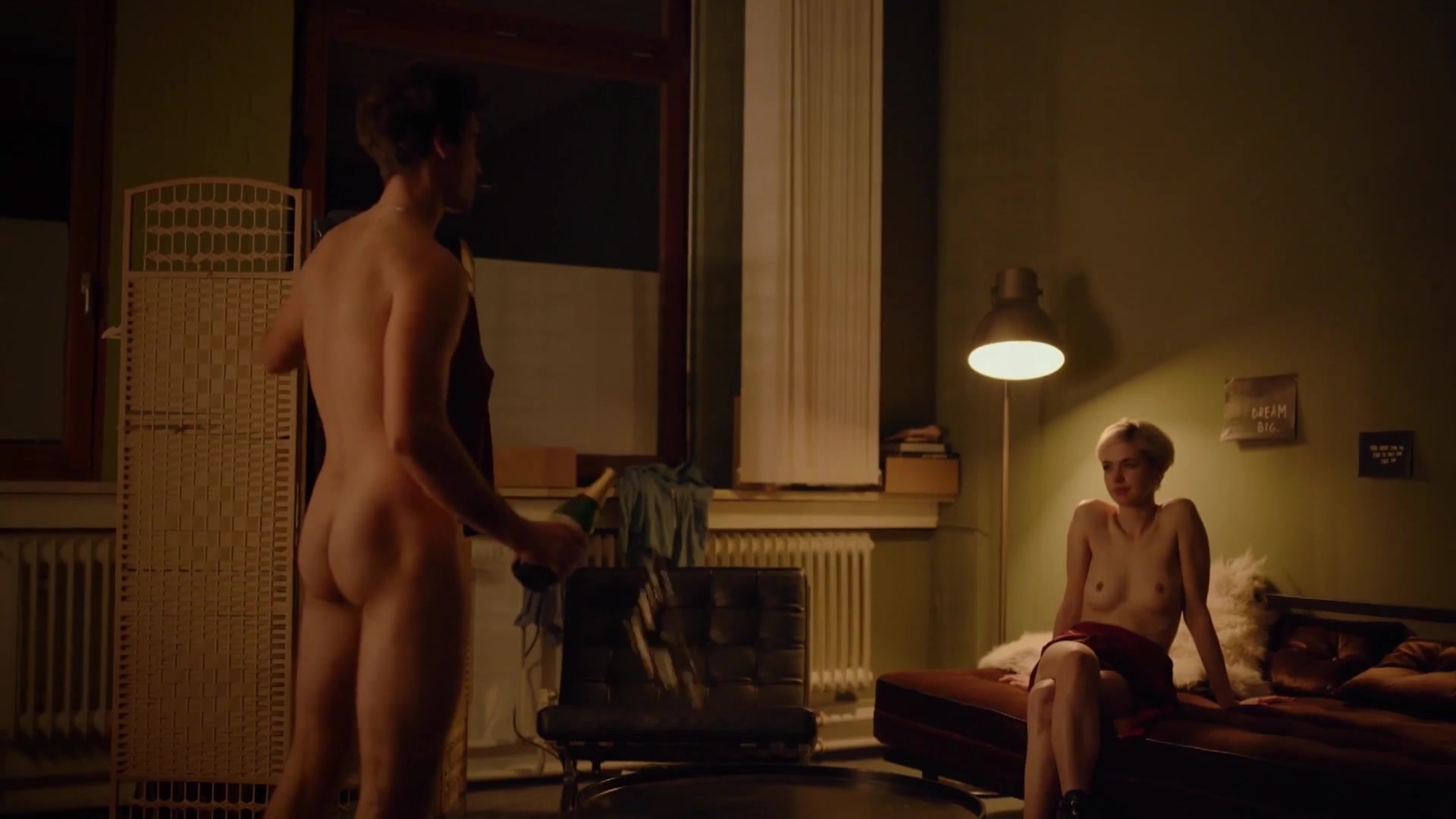 Vivien König: Appears in multiple nude scenes, including topless moments in a park, a full-frontal shower scene with imagined erotic dancing and kissing, and a detailed sequence where she is topless, requesting nipple kissing and receiving cunnilingus, followed by standing full-frontal nude. Additional topless shots occur as she recalls earlier scenes.